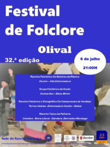 O Rancho Folclórico Moleiros da Ribeira promove a 32.ª edição do Festival de Folclore, na sede da Associação. Esta iniciativa apoiada pelo Município de Ourém, terá como participantes o Rancho Folclórico os Moleiros da Ribeira, Grupo Folclórico de Souto (Guimarães), Rancho Folclórico e Etnográfico Os camponeses de Varatojo (Torres Vedras) e o Rancho Típico da […]