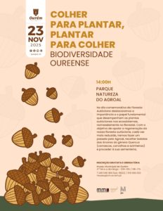DOMINGO / 23 NOV. PARQUE NATUREZA DO AGROAL 14:00H No dia comemorativo da Floresta Autóctone destacaremos a importância e o papel fundamental que desempenham as plantas autóctones nos ecossistemas, nomeadamente no florestal. Com o objetivo de apoiar a regeneração da nossa floresta autóctone, cada vez mais reduzida, iremos fazer um passeio pelo Agroal e recolher bolotas das árvores do género Quercus (carrascos, carvalhos e azinheiras) e proceder à sua sementeira. Inscrição prévia e obrigatória 919 585 003 | 249 540…