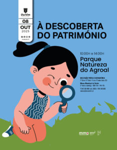 4.ª FEIRA / 08 OUT. PARQUE NATUREZA DO AGROAL 10:00H E 14:00H Os participantes são chamados a conhecer a diversidade patrimonial do Agroal. Pretende-se dar a conhecer o património natural e arqueológico do local, sensibilizando para a sua preservação. Inscrição prévia e obrigatória Público: 1.º e 2.º Ciclo 919 585 003 | 249 540 900 (ext. 6823) | museu@cm.ourem.pt
