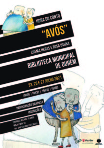 23, 26 e 27 JULHO 2021 - 10H00 | 10H30 | 15H30 |16H00 Biblioteca Municipal de Ourém Hora do Conto à volta do livro “Avós”, de Chema Heras e Rosa Osuna. Público-alvo: Crianças até aos 10 anos | mín. 5 | máx. 10 participantes por sessão. Participação gratuita ׀ Inscrições obrigatórias através do telef. 249 540 900 (ext. 6841) e biblioteca@cm-ourem.pt