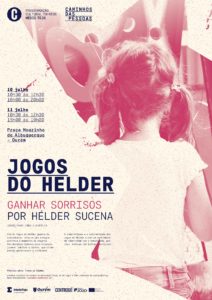 10 julho 2021 | 10:30 – 12:30 e 16:00 – 20:00 11 julho 2021 | 10:30 – 12:30 e 15:00 – 19:00 Praça Mouzinho de Albuquerque | Ourém Acesso livre   Através de um conjunto alargado de jogos, construímos ambientes de pura alegria. A curiosidade provocada convida toda a gente a uma exploração e descoberta de emoções. A valorização das pessoas nas suas diferenças desenvolve um ambiente de aprendizagem das capacidades e limitações de cada um. Os Jogos do Helder…