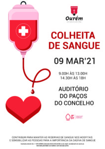 Em tempos de pandemia, todos somos precisos para ajudar a salvar vidas.O Município de Ourém e o Instituto Português do Sangue e da Transplantação promovem nova recolha direcionada à comunidade oureense. Evite as filas, garanta prioridade, inscrevendo-se antecipadamente. Inscrições através do n.º 249 540 900 (extensões 6532, 6533, 6536) ou do mail: social@mail.cm-ourem.pt.Será dada prioridade aos dadores com inscrição prévia.