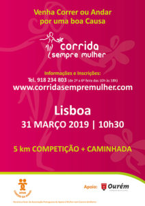 A Associação Portuguesa de Apoio à Mulher com Cancro da Mama, em parceria com Câmara Municipal de Lisboa e com o apoio do Município de Ourém e da Sports High Performance e da Azores Sports Leader, vai realizar no dia 31 de março de 2019, com início às 10h30m, a "CORRIDA SEMPRE MULHER", prova com vertente competitiva exclusiva para mulheres e vertente não competitiva em que a participação dos homens também é permitida. Este evento tem como finalidade a angariação…