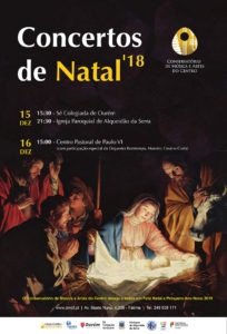 15 DE DEZEMBRO 15.30H - Sé Colegiada de Ourém 21.30H - Igreja Paroquial de Alqueidão da Serra 16 DE DEZEMBRO 15:00H - Centro Pastoral de Paulo VI (com participação especial da Orquestra Bomtempo, Maestro: Cesário Costa) Organização: Conservatório de Música e Artes do Centro