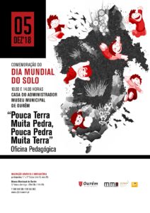 Oficina Pedagógica "Pouca Terra Muita Pedra, Pouca Pedra Muita Terra" Público-alvo: 1.º e 2.º ciclos Limite de participantes: mínimo 10 máximo 25 Atividade gratuita, mas com inscrição prévia e obrigatória Inscrições no Museu Municipal de Ourém, de terça a domingo das 9h às 13h e das 14h às 17h. Tel.: 249 540 900 (ext. 6831) ׀ tlm: 919 585 003 ׀ e-mail: museu@mail.cm-ourem.pt