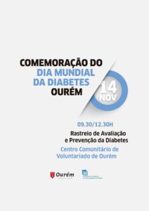 No dia 14 de novembro comemora-se o Dia Mundial da Diabetes, e o Município de Ourém em parceria com a UCC de Ourém vão realizar no Centro Comunitário de Voluntariado de Ourém, das 9.30h às 12.30h, um rastreio de avaliação e Prevenção da Diabetes.