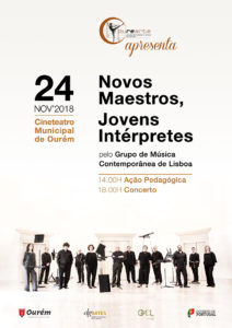 O Cineteatro Municipal de Ourém recebe o espetáculo “Novos Maestros, Jovens Interpretes” pelo Grupo de Música Contemporânea de Lisboa, no dia 24 de novembro e com direção do Maestro Tiago Oliveira. Entre as 14.00H e as 16.00H decorre uma ação pedagógica, seguido do concerto com início às 18.00H. Organização: Ourearte – Escola de Artes e Música de Ourém