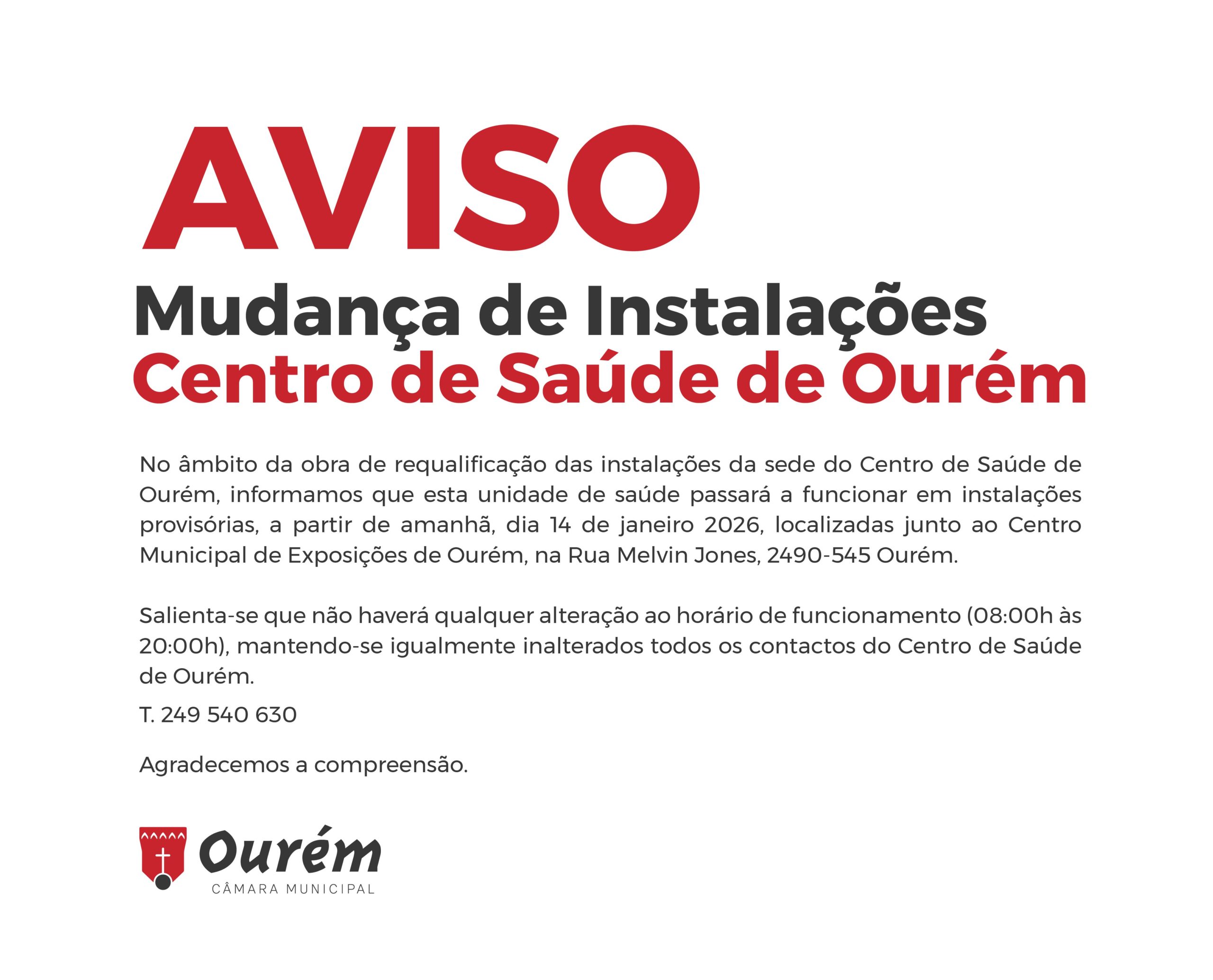 Aviso – Mudança de Instalações Centro de Saúde de Ourém