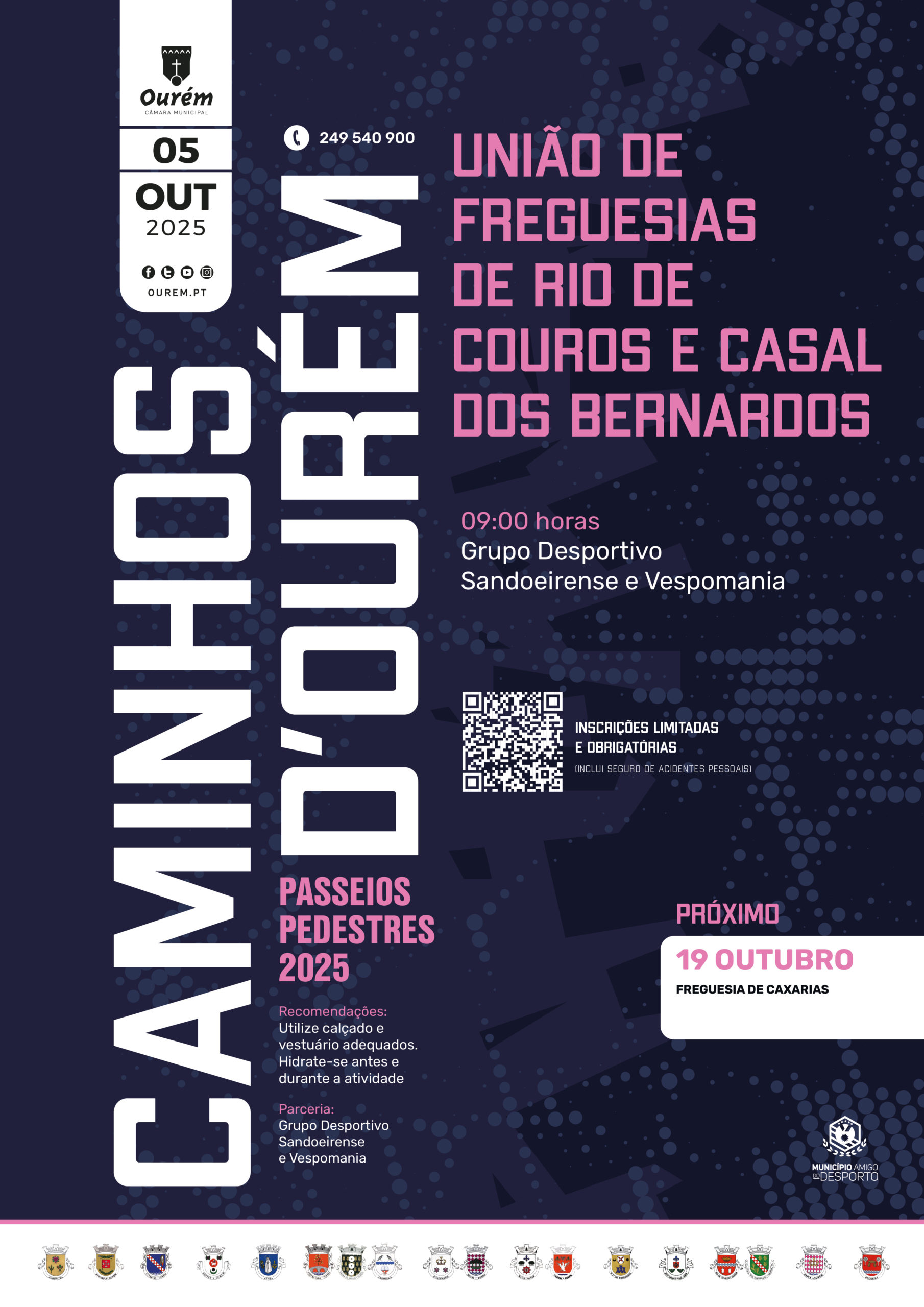 O programa Caminhos D’ Ourém traduziu-se numa iniciativa de grande adesão e participação nos últimos anos. Com a realização desta iniciativa, pretende-se sensibilizar, alertar e consciencializar para a importância da prática da atividade física, para uma efetiva alteração de comportamentos, permitindo oportunidades de participação, para uma comunidade mais ativa, com melhor qualidade de vida e mais feliz.