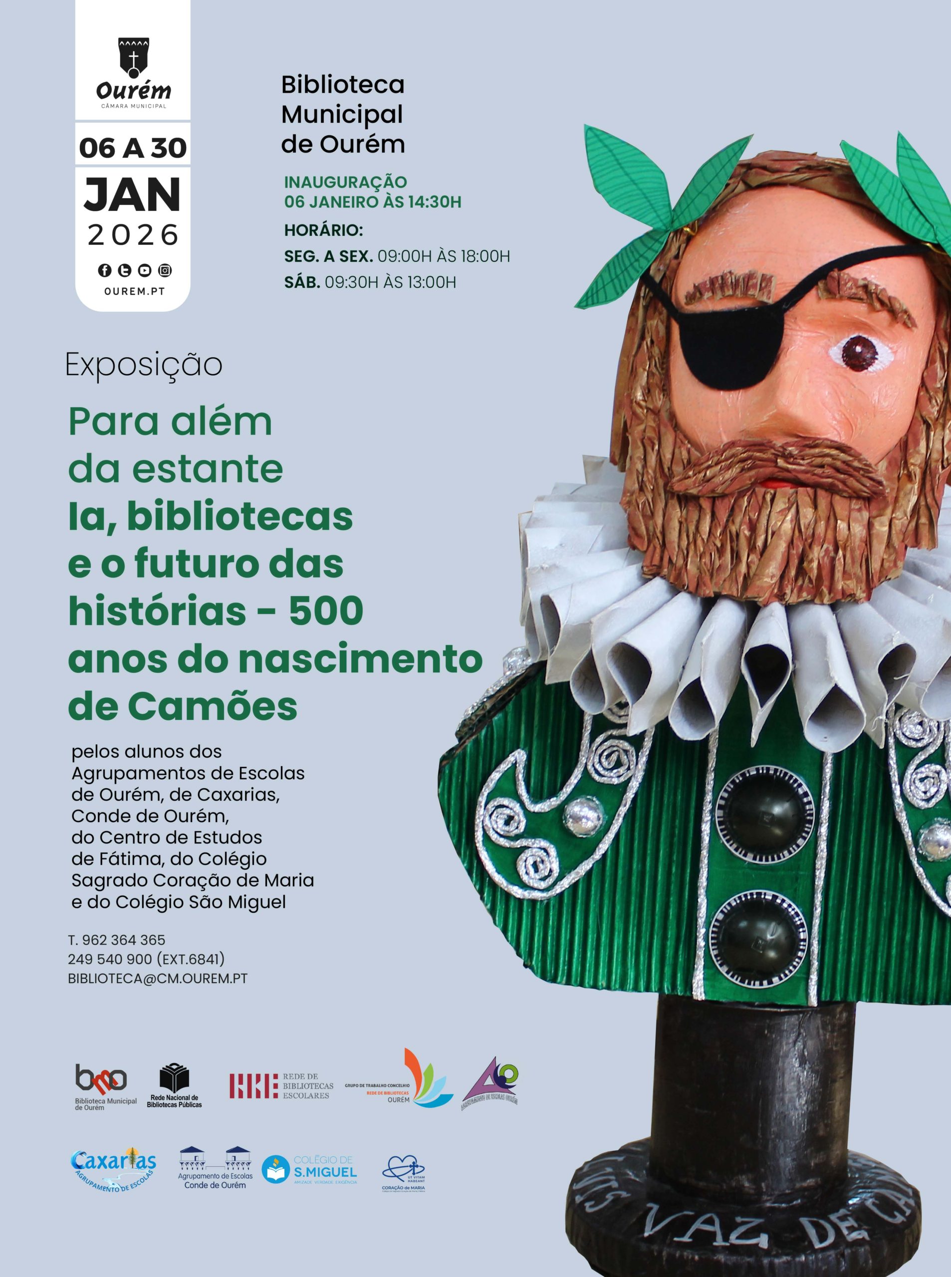 Nesta exposição toda a comunidade poderá apreciar os trabalhos resultantes da comemoração do Mês das Bibliotecas Escolares (outubro de 2025) executados com orientação do Grupo de Trabalho Concelhio da Rede de Bibliotecas de Ourém, pelos alunos dos Agrupamentos de Ourém, de Caxarias, Conde de Ourém, do Centro de Estudos de Fátima, do Colégio Sagrado Coração de Maria e do Colégio São Miguel.