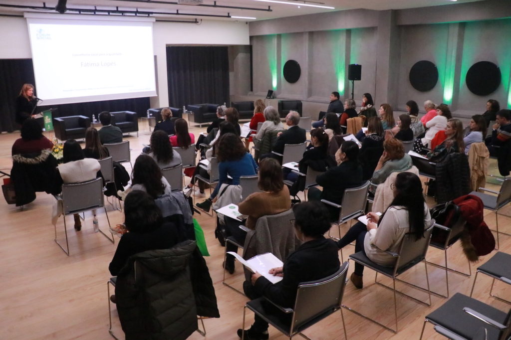 A última oradora da tarde foi Carla Pereira que apresentou a Estrutura de Atendimento à Vítima de Violência Doméstica Espaço M de Ourém. Esta resposta da Câmara Municipal é assegurada por uma equipa multidisciplinar especializada e presta um atendimento personalizado às vítimas de violência doméstica, assegurando uma rápida intervenção e um adequado encaminhamento. Carla Pereira apresentou também um retrato estatístico detalhado da atividade do Espaço M que, desde 2018, prestou 607 atendimentos a 121 vítimas.