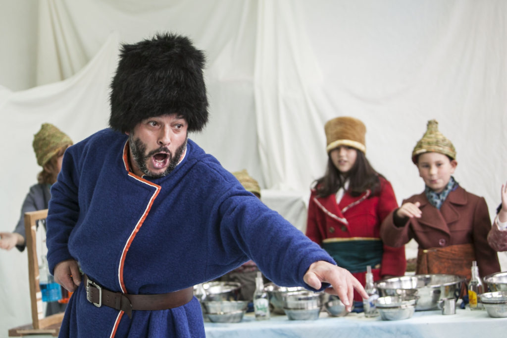 Piotor trouxe consigo uma história sobre a água…sobre uma gota de água que ao cair do céu da Rússia, transforma as crianças que a querem ouvir, em pequenos russos que em vez de mãos, têm o poder de trazer a chuva e o dilúvio para dentro de casa. Quando a história termina, as crianças só esperam que a gota de água volte a cair para refrescar os seus dedos… O Teatro do Montemuro vê no projeto “À Espera que volte” a necessidade de