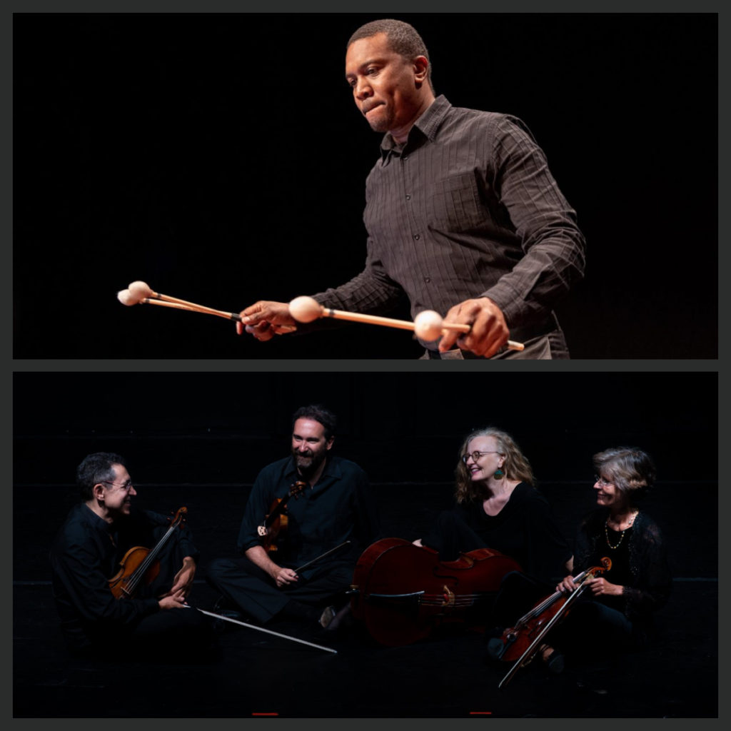 Em palco Quarteto Lopes-Graça e Aldovino Munguambe (percussões), acompanhados por um vídeo de apresentação da Obra.