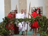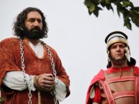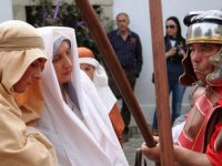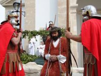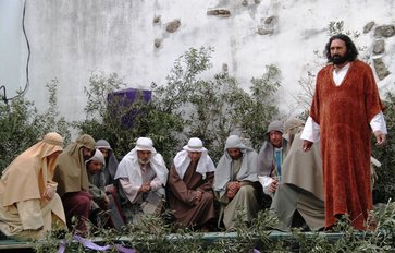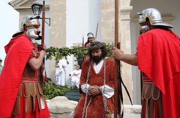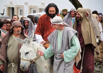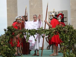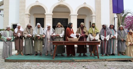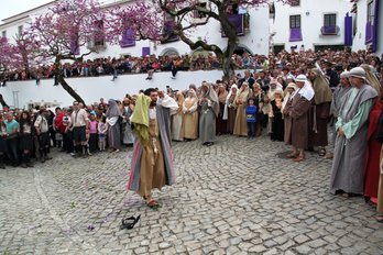 A Via-Sacra ao Vivo é dramatizada por cerca de 100 atores e figurantes locais que recriam as últimas passagens de Jesus Cristo, desde a sua entrada triunfal em Jerusalém até à sua crucificação, percorrendo as 14 estações da Via-Sacra. A procissão é enriquecida com orações e cânticos religiosos e enquadrada no cenário monumental deste centro histórico classificado como Monumento de Interesse Público.